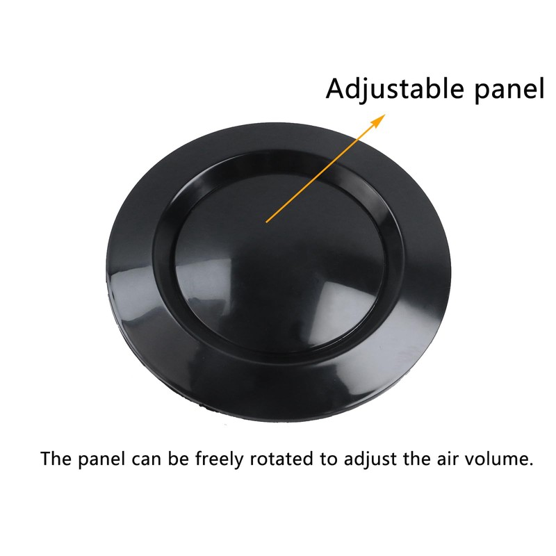 - Size: Opening size:94 mm / 3.7 inch; Diameter: 150 mm / 5.90 inch Height:6.3cm / 2.48 inch Material: ABS plastic Colour: Black The packaging includes: 1 x adjustable spring-loaded circular exhaust port.