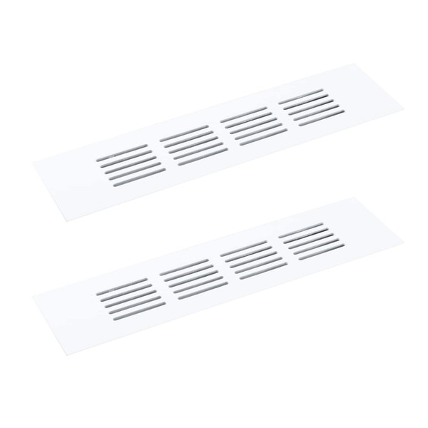 Geesatis 8 x 2 inch / 200 x 50 mm Rectangle Shape Mesh Air Vent for Cabinet Shoe Cabinet Hardware Accessories Ventilation Cover, with Mounting Screws, White, 2 Pcs