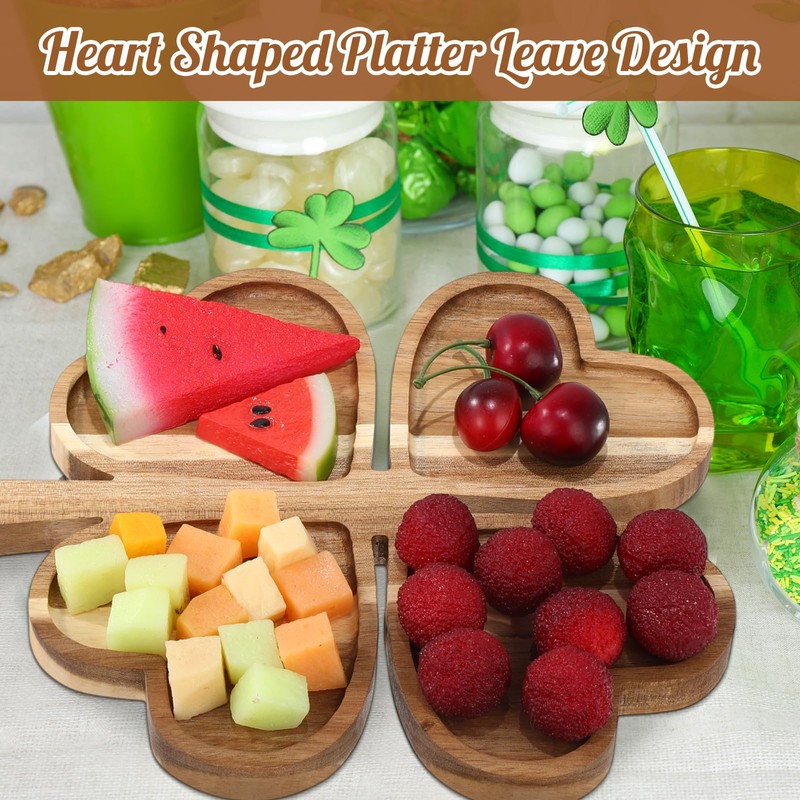 - Quality Materials: these St. Patricks Day serving tray are made of acacia wood, offers 4 divided compartments with heart shape, polished smooth with a rustic wood grain, thick, and durable for long-term use, a welcome addition to the table and party decoration