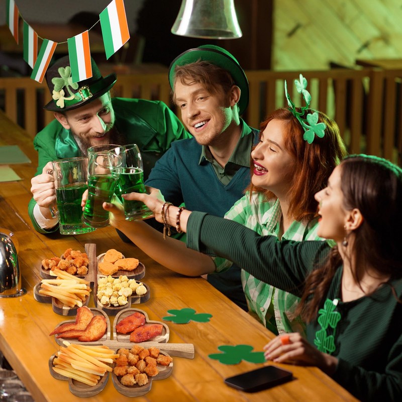 Geetery 12 Pcs St. Patrick's Day Serving Tray Four Leaf Clover Plates Wooden Shamrock Platter Charcuterie Board Irish Heart Snack Dessert Dish Plates for St Patrick's Decorations Party Supplies