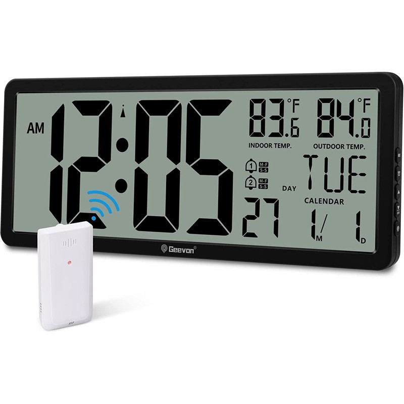 - [14.3" Extra Large Digital Wall Clock for Elderly] GEEVON Atomic Battery Operated Wall Clock(12/24H) is boasting 4.4-inch ultra-big digits, which is much much bigger than 16-inch Traditional Wall Clock, whose digit size is 1.8-inch.Make sure that our large display clock with temp can be seen clearly from a distance, even if you have some vision problems.