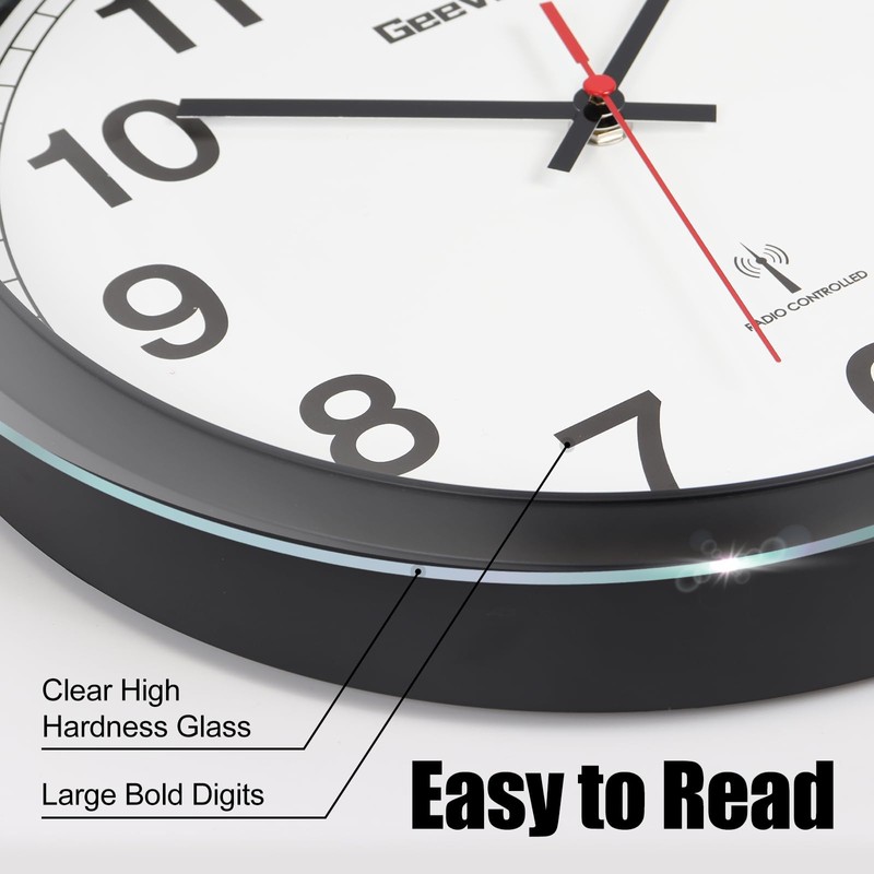 Geevon Geevon Atomic Wall Clock, 12" Sets Automatically Wall Clock Battery Operated with AUTO DST, Easy to Read Atomic Analog Clock for Kitchen/Office/Classroom/Living Room(Black)