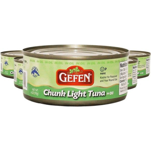 Gefen Chunk Light Tuna in Oil 6oz (6 Pack), Low Fat, Kosher for Passover
