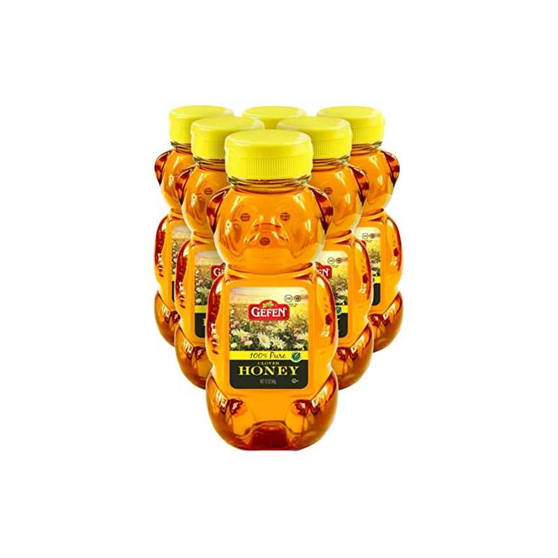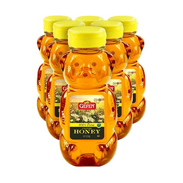 Gefen US Grade A Honey Bears, 12oz (6 Pack) 100% Clover Honey, No Fillers, Gluten Free