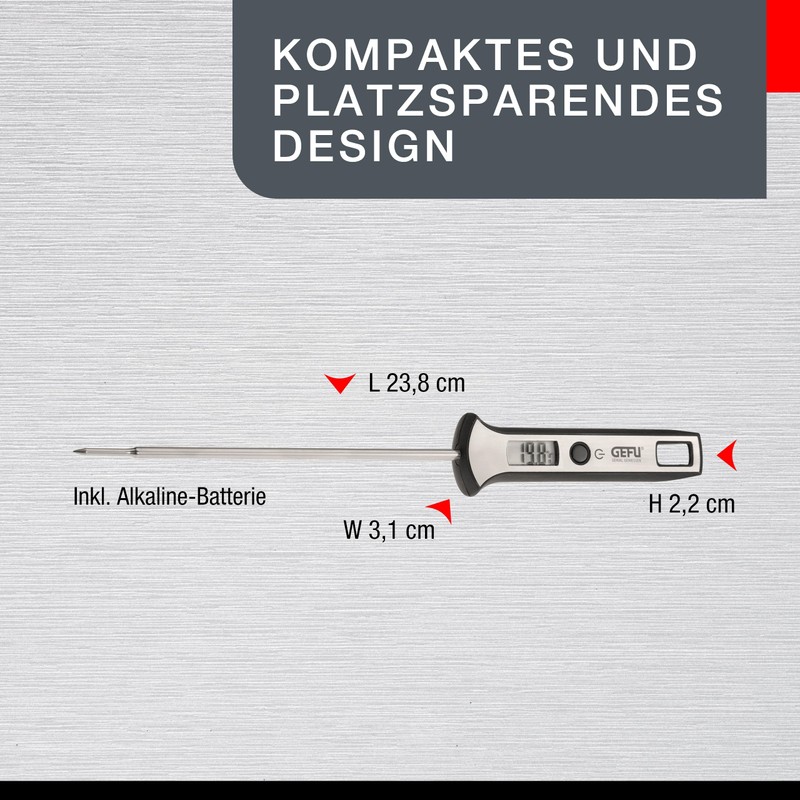 - Hohe Messgenauigkeit: Das digitale Thermometer von Gefu bietet punktgenaue Temperaturmessungen in einem Messbereich von -45 bis +200 Grad Celsius, angezeigt wird die Temperatur auf einem gut lesbaren LCD Display mit großen Ziffern