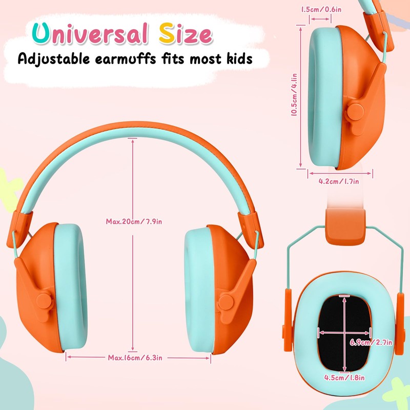 Gehörschutz Kinder, Lärmschutz Kopfhörer Kinder mit Autismus, Passiver Kapselgehörschutz für Grundschüler, Verstellbare Ohrenschützer für Konzert-Orange
