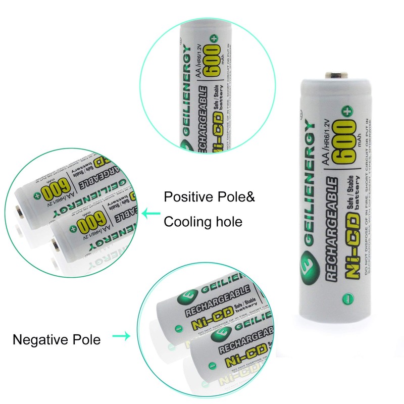 GEILIENERGY Solar Light Batteries NiCd AA 600mAh 1.2V Rechargeable Batteries for Solar Lamp Garden Light(Pack of 8)