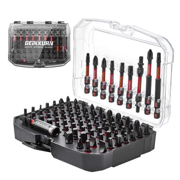 Geinxurn Impact Screwdriver Bits Set, 83Pieces Magnetic Muliti S2 Steel Phillips/Slotted/Square/Torx/Hex Insert Power Bits Tips Set with Impact Bit Holder and Socket Adapter (Black Storage Box Case)