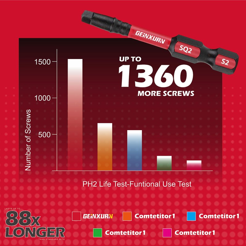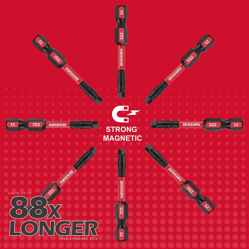 - SCREW DRIVER BITS — 50 pieces 2 inch SQ2 driver bits and 1pieces magnetic impact bit shaft holder, made of high quality S2 Alloy Steel which is anti-impact and tough, great wear resistant.