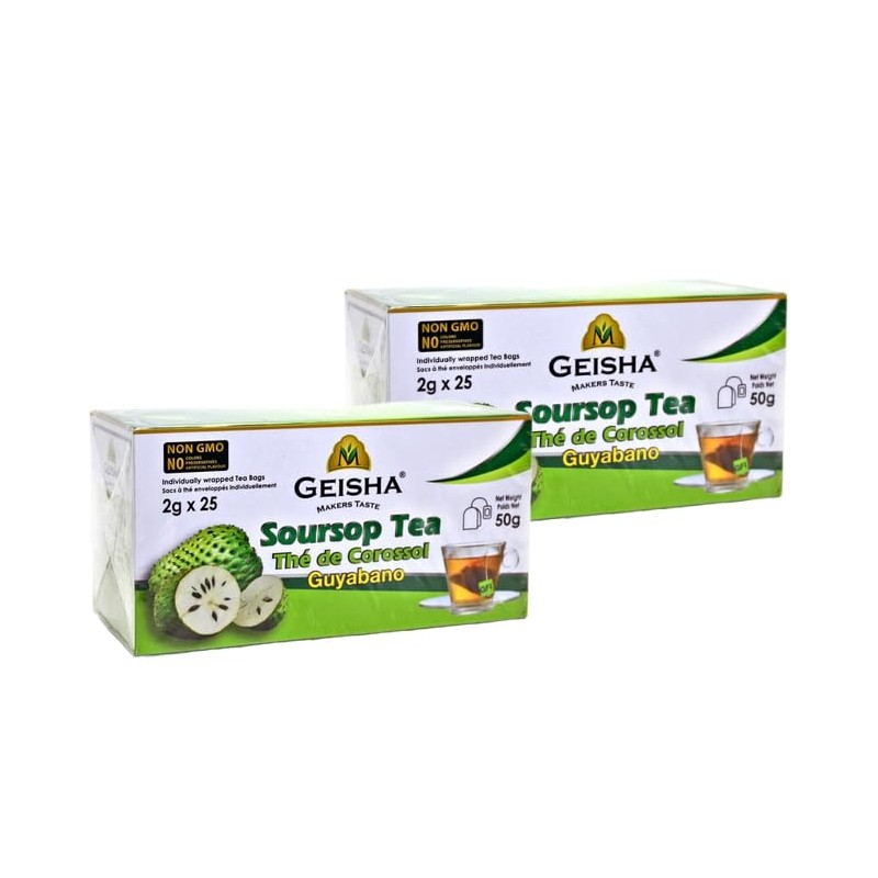 GEISHA Soursop Tea - 2 PACK (50 Tea Bags/Pouches) | Graviola | Guyabano | Ceylon Tea | Non GMO