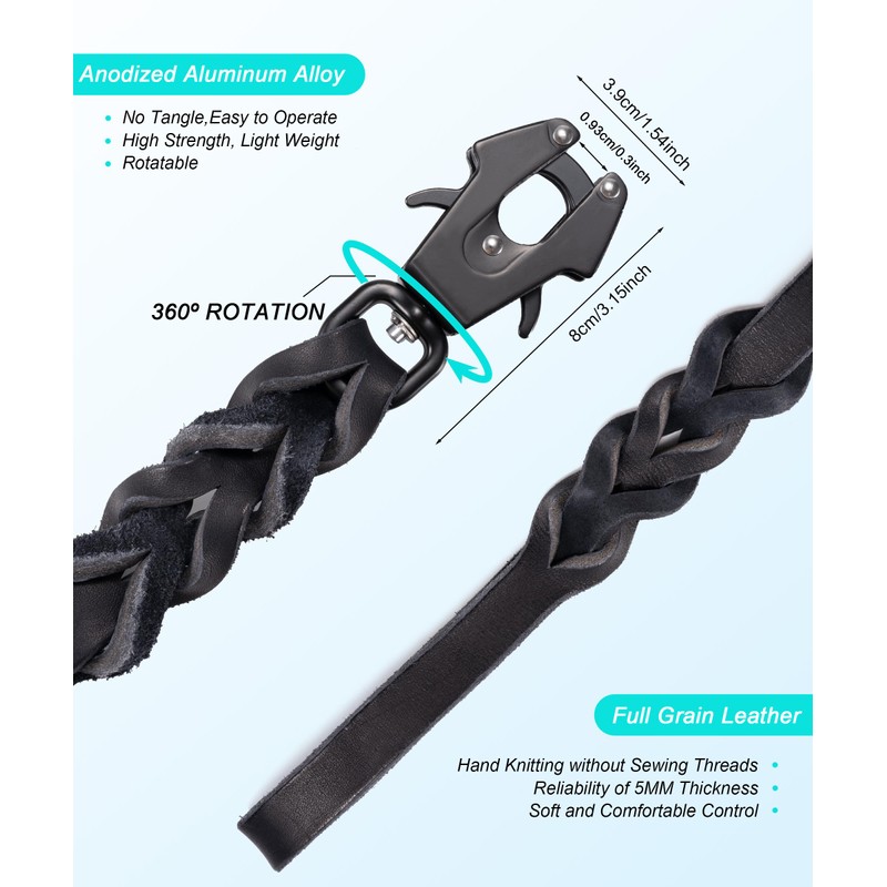 - Braided Leather Dog Leash : GEIT leather dog leash is made from an entire piece of Italian full grain genuine leather, cut in one piece, no splicing, won't break, won't split, ensure durability. And this strong dog leash features a handmade braided two-part twist to lessen the impact of your dog during sprints, high tensile strength, and a fashionable and beautiful appearance