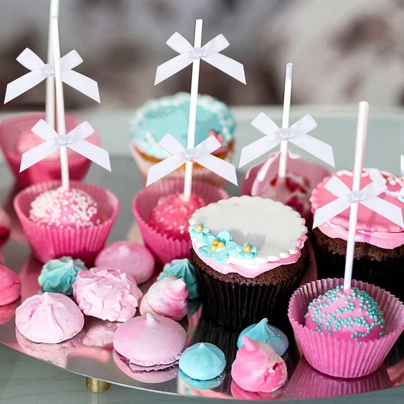 Gejoy 100 Pieces 3.5" Solid White Bows Mini Satin Ribbon Twist Tie Bows Crafts for Wedding Graduation Birthday Party Shower Gift Wrapping Candy Treat Bags Decoration
