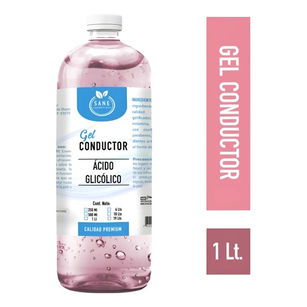 • 1 Litro de Gel Conductor con Ácido Glicólico, marca SANE Essentials. >>>>> FACTURAMOS <<<<<< Envase Boston con tapa dosificadora tipo Flip Top Calidad Premium, ideal para APARATOLOGÍA, aunque puede ser usado de manera manual: