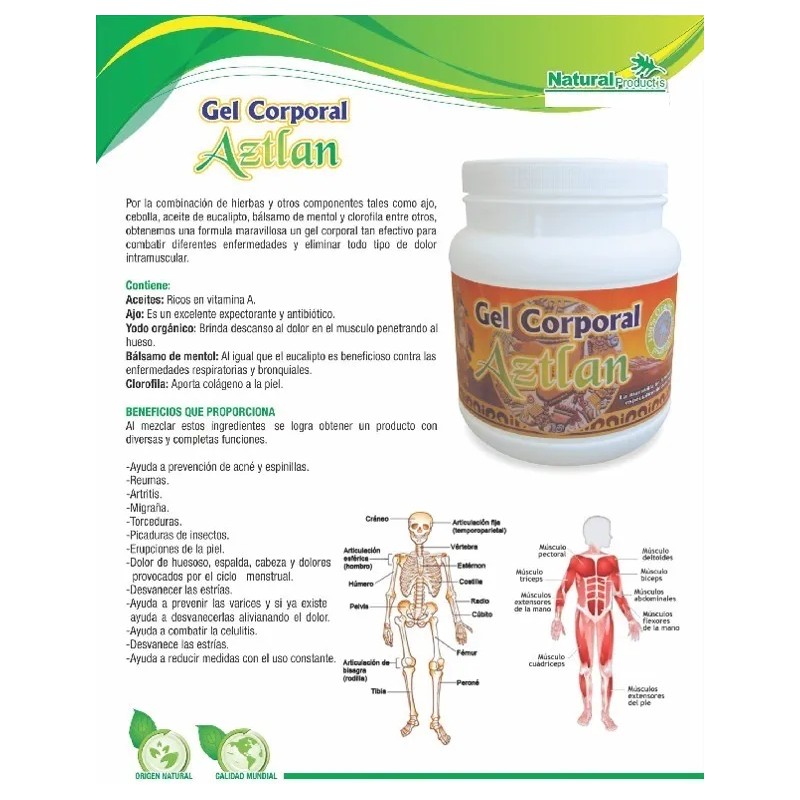 Gel Corporal Aztlán 1.2 kg con Mentol y Eucalipto | Alivio Refrescante para Dolores Musculares, Piernas Cansadas y Contracturas 💪❄️ | Fórmula Herbal de Uso Diario – Venta en México 🇲🇽