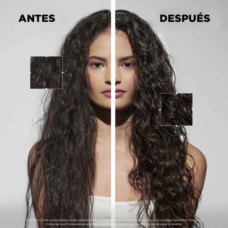Descubre el secreto para unos rizos perfectamente definidos y llenos de vida con el Gelée Curl Contour de Kérastase. Esta innovadora fórmula en gel crema fusiona la hidratación más profunda de una crema con la fijación ligera de un gel, ideal para realzar la belleza natural de tus rizos y ondas.