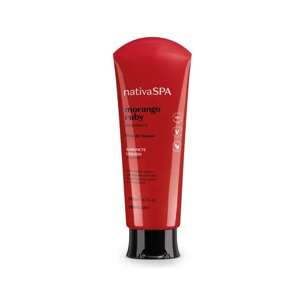Enriquecido con extracto de fresa y aceite de quinua, este jabón líquido crea una espuma cremosa en contacto con la piel húmeda, lo que promueve una limpieza suave y deja la piel suave y con un aroma delicado.