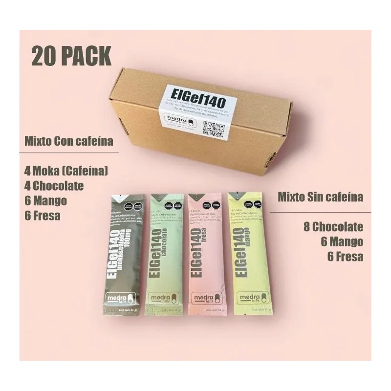 -Mixto con cafeína: Incluye 6 de Mango, 6 de fresa, 4 de chocolate y 4 de Moka con Cafeína(100mg).