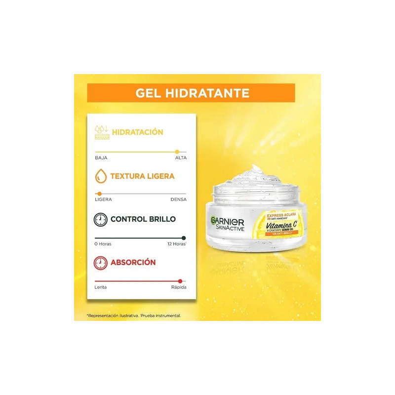 Gel Facial Garnier SkinActive Express Aclara con Vitamina C 50ml | Hidratante Día y Noche para Todo Tipo de Piel