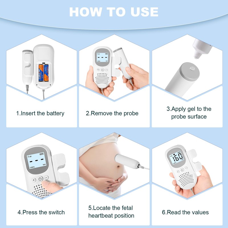 - Waterproof probe, high sensitivity of the probe, and the host and the probe are designed separately, which makes it easier to find the fetal heart position.
