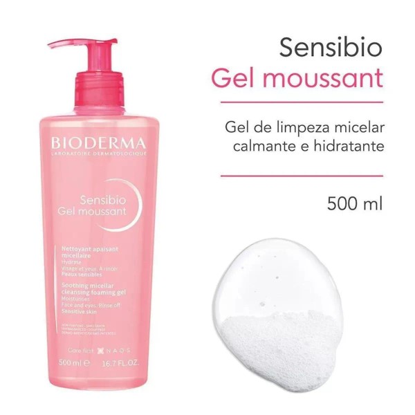 Gel Moussant Bioderma Sensibio Gel Moussant Micelar día/noche para piel sensible de 500mL/500g +12 años
