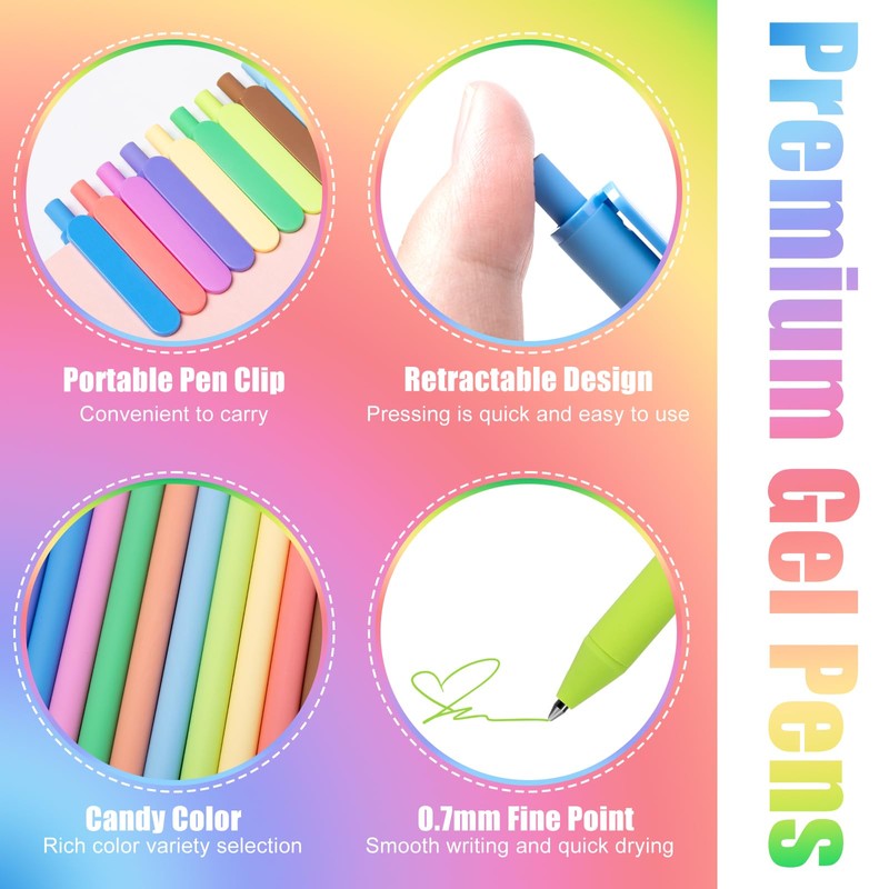 - VIBRANT COLORS: You will receive 12 pieces retractable gel pens with 12 colors, enough quantity to meet your different needs, 0.5mm tip writes fine lines, wonderful accessories for writing, studying or working, delicate gifts for yourself, or other special ones.
