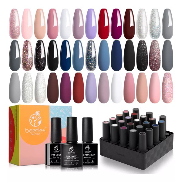 Lo que obtienes: 20 mini esmaltes de gel de colores (0.2 fl oz cada botella) + 3 bases que no se limpian y una capa superior brillante y mate (0.3 fl oz cada botella). 20 colores hermosos de colores populares y modernos adecuados para todas las estaciones y la vida cotidiana. es una colección de tonos modernos que harán una declaración audaz.