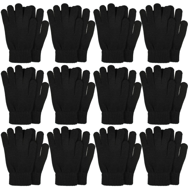 Gelante 12 Pairs Knitted Magic Stretch Winter Gloves for Men and Women, Warm Gloves for Cold Weather 2098G Black