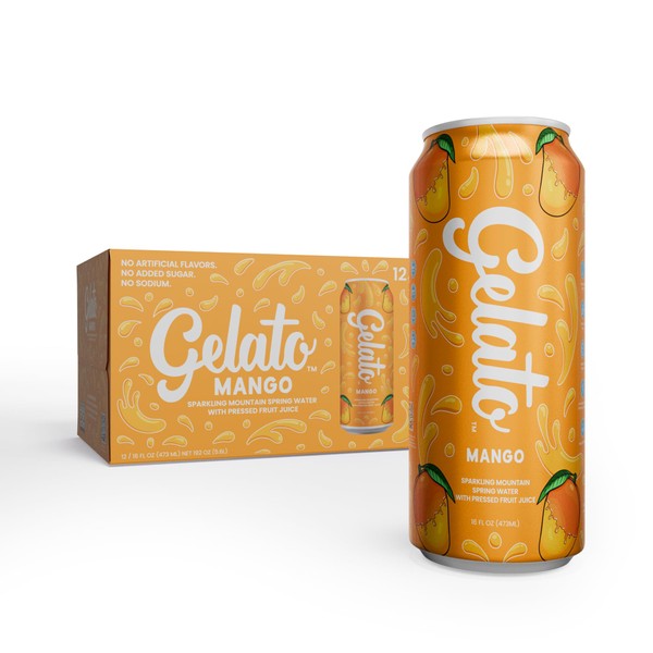 Gelato Mango Sparkling Water - Oxygenated Sparkling Water Packaged in Aluminum Cans - 12 pack (16 fl oz cans)