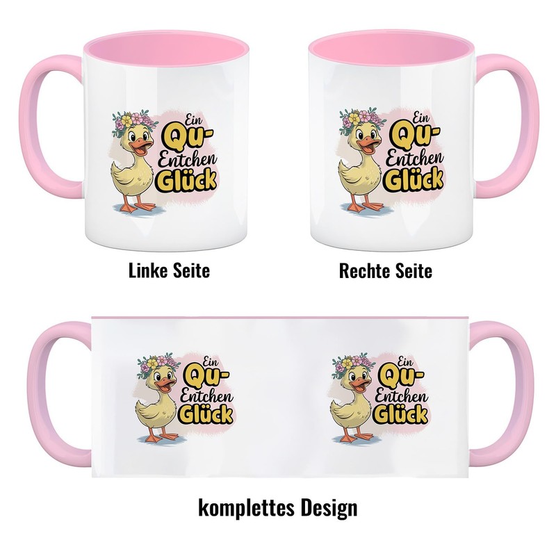 • Lieferumfang: 1x Gelbe Ente Kaffeebecher in rosa - Ein Qu-ENTCHEN Glück