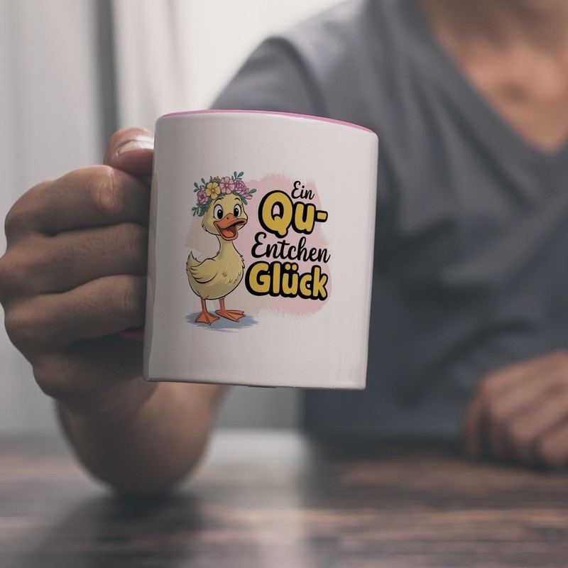 Gelbe Ente Kaffeebecher in rosa - Ein Qu-ENTCHEN Glück Lustige Tasse für Kaffeeliebhaber mit Spruch