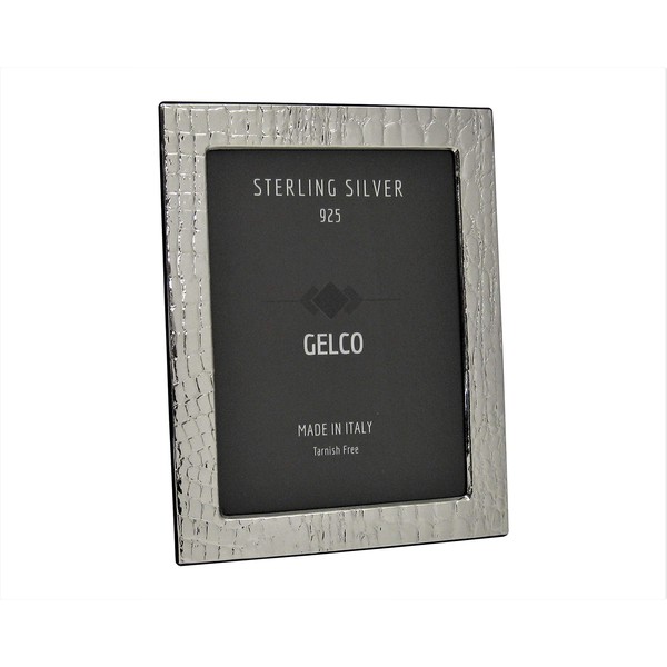Gelco Italian 925 Sterling Silver & Wooden Back Leather Design Picture Frame (4x6)