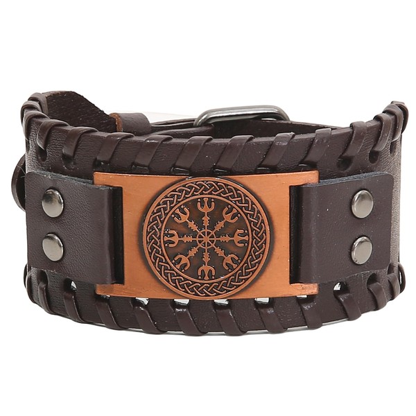 GelConnie - Pulsera vikinga de piel punk con amuleto nórdico escandinavo talismán celta pagana, Cuero, Sin gemas., Brújula de oro rosa, MLPB079-Rose gold