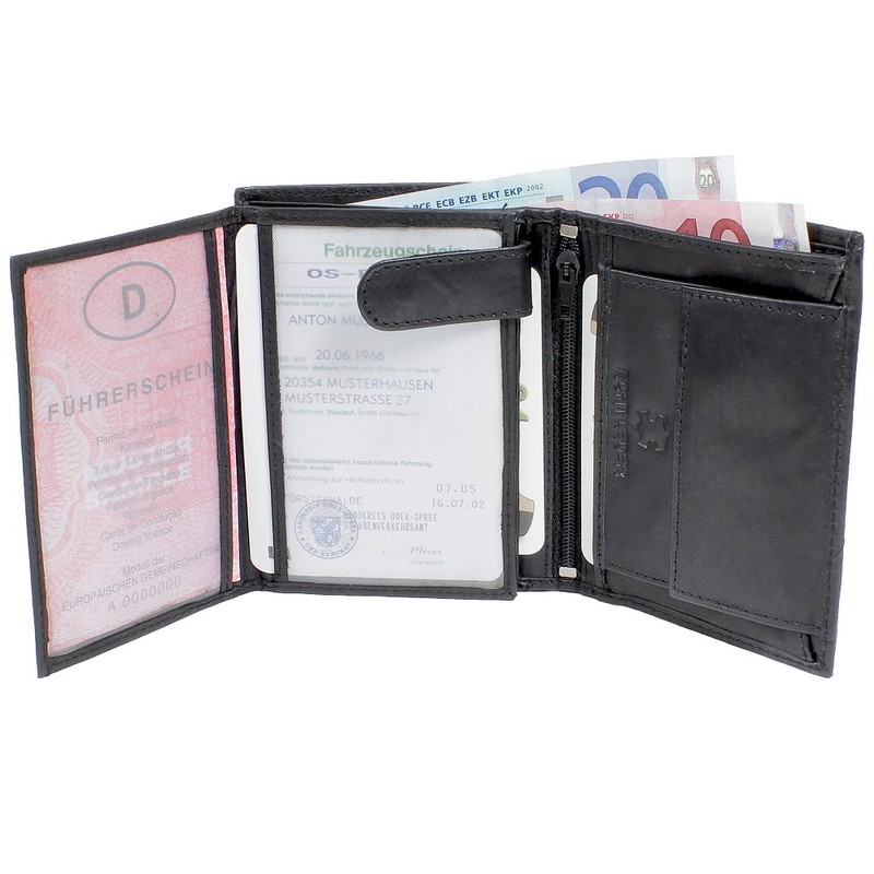 Geldbörse Portemonnaie Geldbeutel echt Leder schwarz Hochformat Neu
