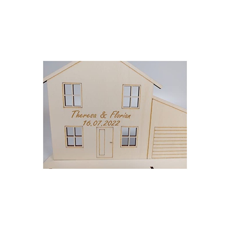 Mit unseren Geldgeschenken haben Sie ein einfaches, günstiges aber aussagekräftiges und kreatives Präsent für jeden Anlass. Einfach zusammenstecken und beliebig viel Geld befestigen. Fertig! - Die Teile sind einfach zum Zusammenstecken - Aus stabilen 4mm Sperrholz - Geldscheine lassen sich einfach mit Kreppklebeband befestigen - Besteht zu 100% aus Holz, dadurch sehr nachhaltig - Kann durch viele Befestigungsmöglichkeiten noch selbst gestalten werden - Grundplatte 25x12cm - Ideal als Gruppengeschenk - für Viele Anlässe nutzbar z.B. Hausbau, Hauskauf, Einzug, Wohnungskauf