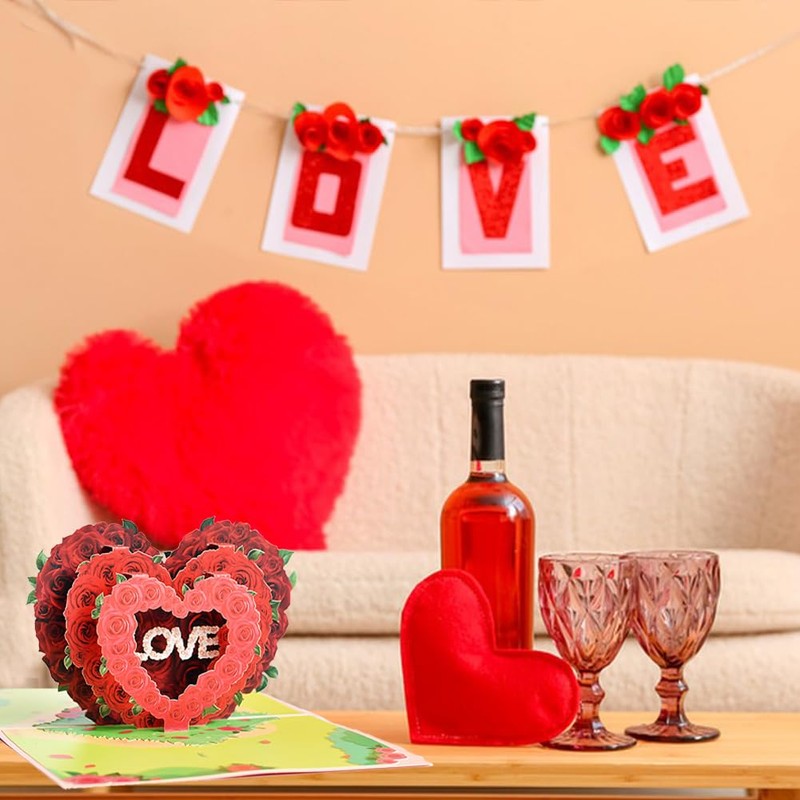 Geli 3D Pop Up Card, Rose Heart Pop-up Cards Paper Mother's Day Card Wedding Anniversary Card Birthday Valentines Gifts Card with Note Card and Envelope (Rose Love)