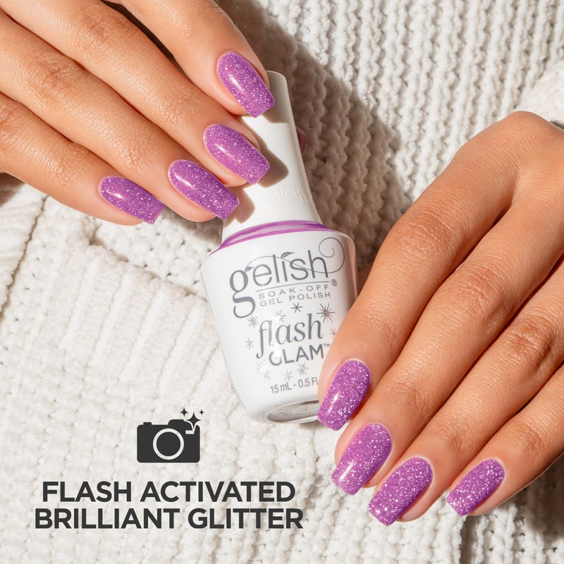 Gelish Flash Glam Glitter Gel Polish - Sparkling Flash-Activated Glitter, Long-Lasting, High-Shine, No Chip Professional Polish (One Click At A Time, 15mL)