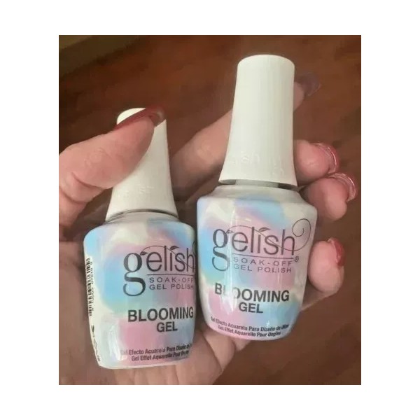 Gelish Blooming Gel allows professionals to create marble/watercolor looks within minutes. Easy application, LED cured to finish and no mess. Designed for use with Gelish Soak-Off Gel and works with any enhancement service using soak-off gel.