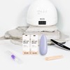 1 x UV/LED Gel Nail Lamp, 1 x Colour Coat, 1 x Base Coat, 1 x Top Coat, 1 x Essentials Tool Pack (Blueberry Cuticle Oil, Nail File, Orangewood Cuticle Sticks).