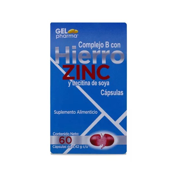 Gelpharma Complejo B Hierro, Zinc Y Lecitina De Soya, 60 Capsulas, Gel Sabor Sin Sabor