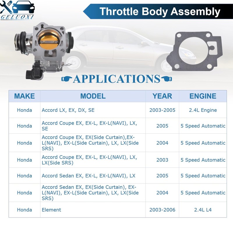 Throttle Body Assembly 16400-RAA-A62 Replacement for 2003-2005 Honda Accord DX LX EX 2.4L / 2003-2006 Honda Element 2.4L L4 16400RAAA62