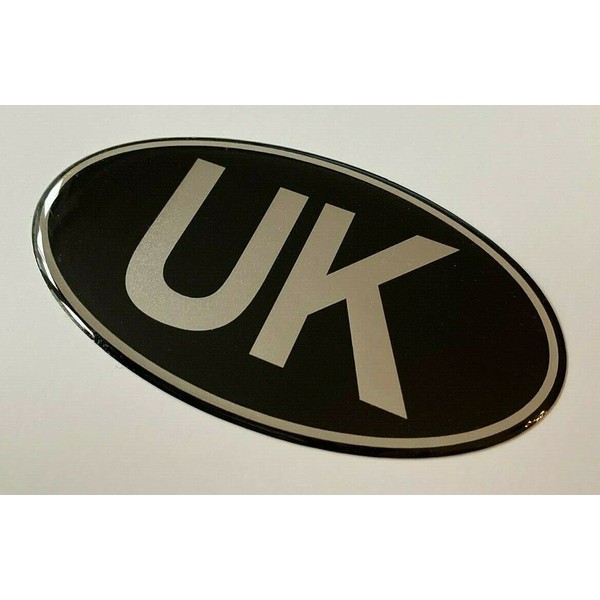 Gelz UK Car Oval Gel Domed Sticker 75mm x 43mm Sticker/Decal - Retro - CHROME on BLACK
