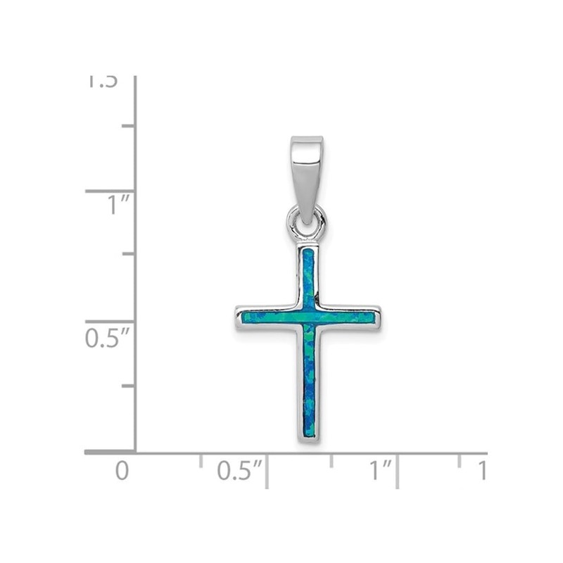 Gem And Harmony Lab Created Blue Opal Cross Pendant Necklace in Sterling Silver with Chain