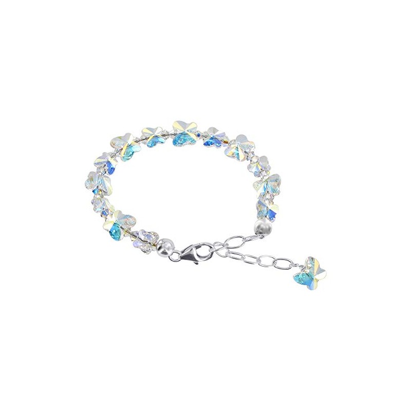 Gem Avenue Butterfly Shaped 925 Sterling Silver Clear AB Austrian Crystals 5.5 to 7 Inch Adjustable Bracelet for Women