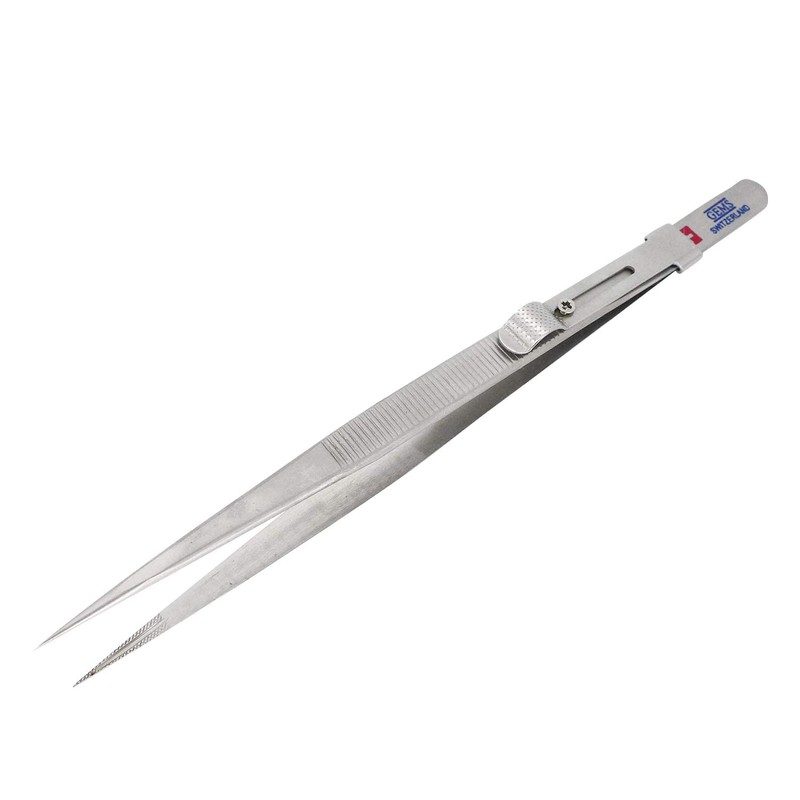 These well balanced diamond tweezers with slide lock are ideal for handling stones and small components.The locking mechanism holds stones securely positioned.Slide-lock mechanism provides a firm grip