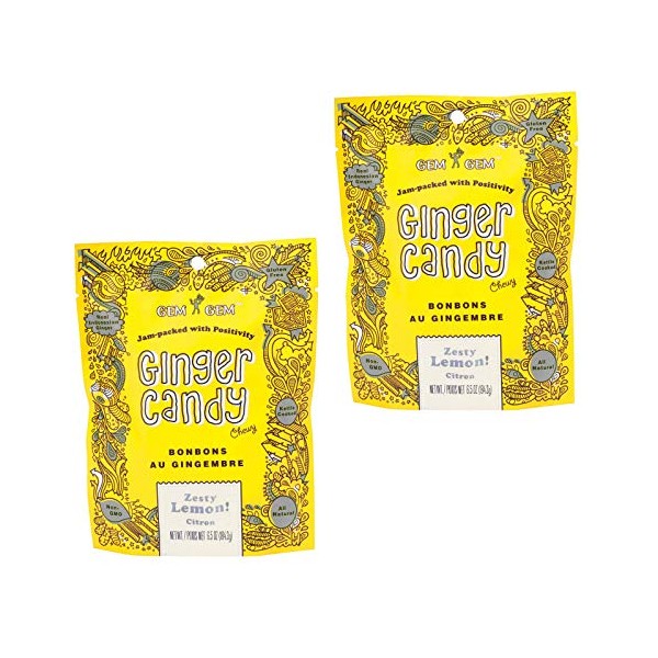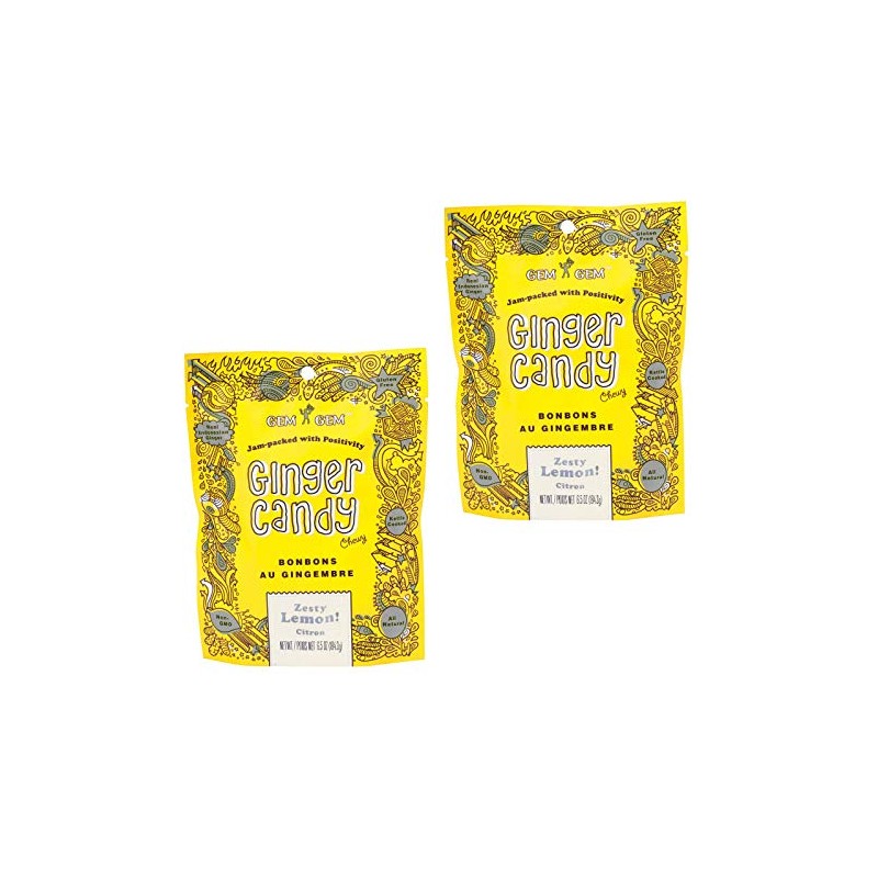 Gem Gem Ginger Candy Chewy Ginger Chews (Lemon, 2 Packs 6.5oz)