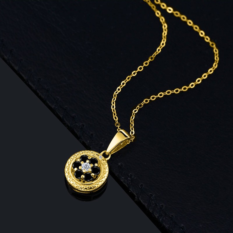 18K Yellow Gold Plated Silver Black and White Diamond Round Pendant Necklace For Women (0.36 Cttw, Gemstone Birthstone, with 18 Inch Chain)