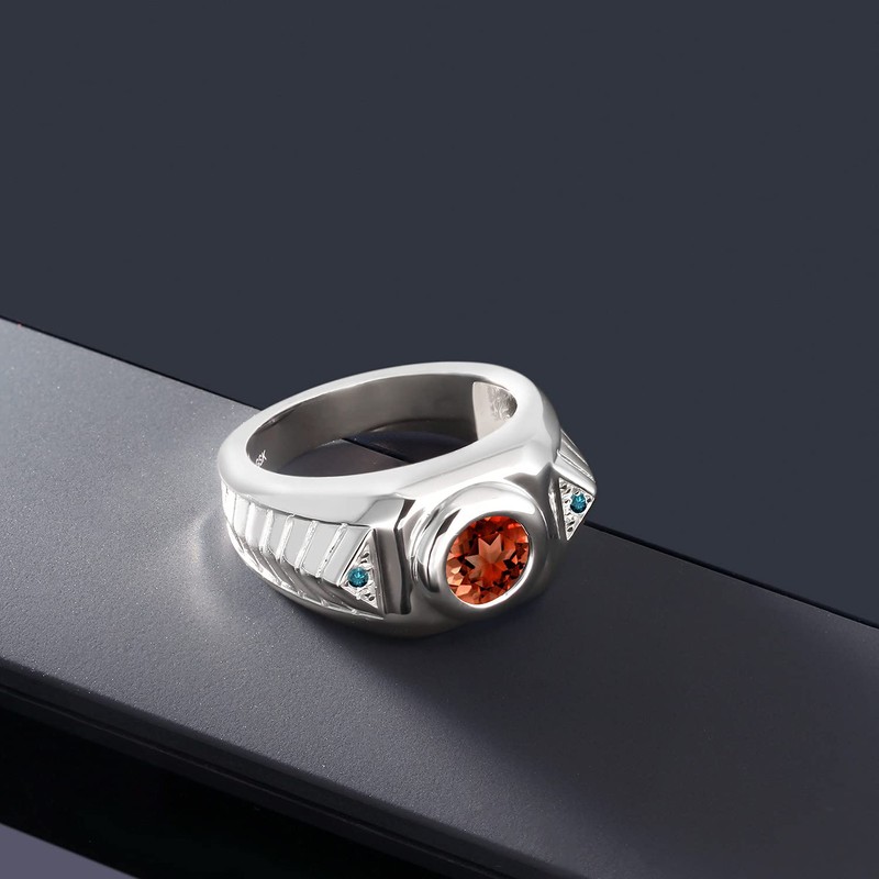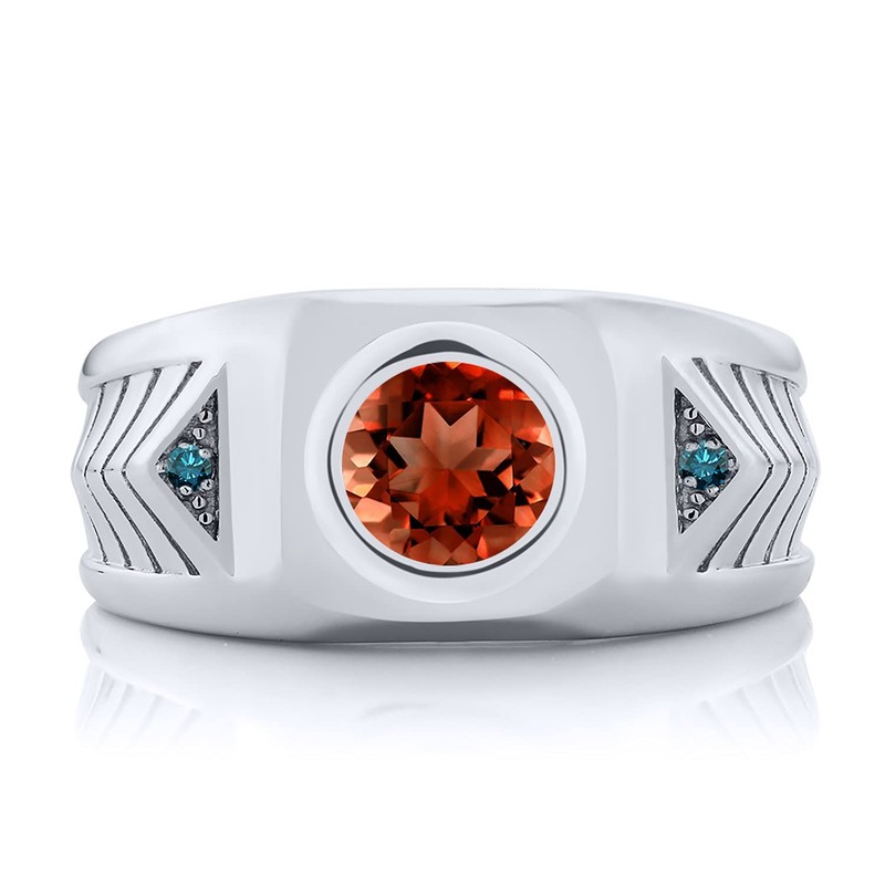 Gem Stone King 1.63 Ct Round Red Garnet Blue Diamond 925 Sterling Silver Men's Ring (Size 11)