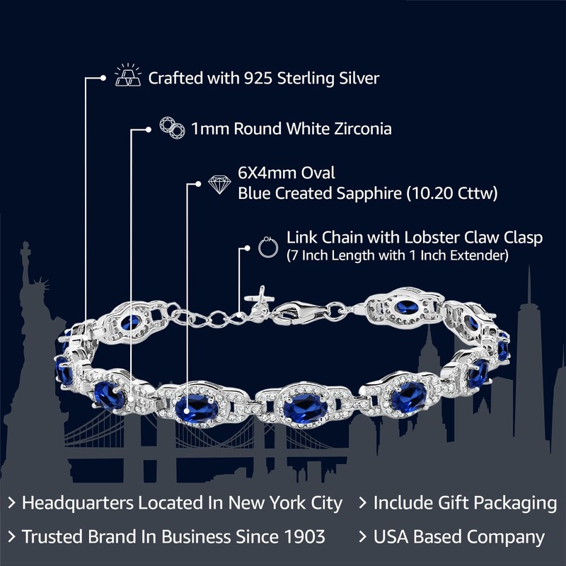 - Plata de ley 925 de alta calidad: fabricada con plata de ley 925 de alta calidad, esta pulsera ofrece durabilidad y brillo duradero. El ajuste de plata de ley proporciona un hermoso telón de fondo para los zafiros creados en azul, mejorando su belleza natural y creando un diseño atemporal y elegante.