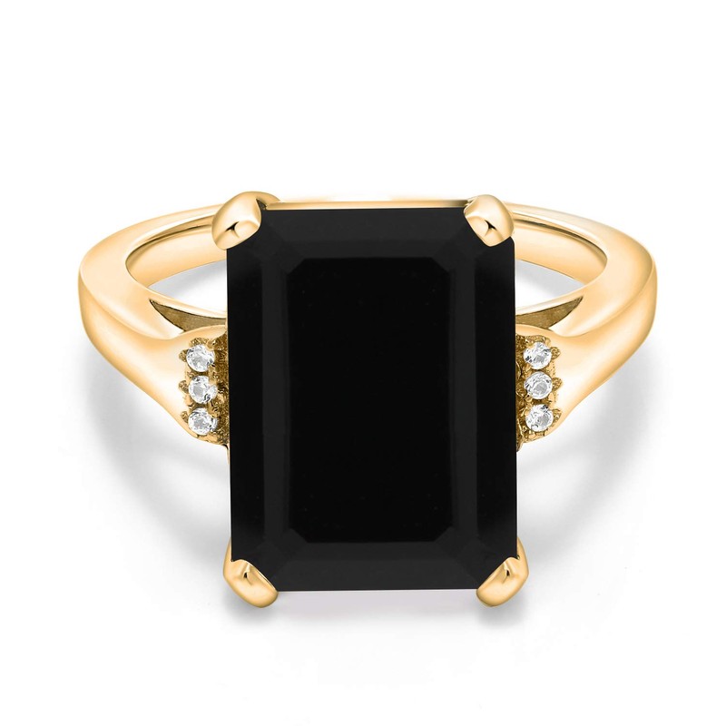Gem Stone King 18K Yellow Gold Plated Silver Black Onyx Women Ring (6.67 Cttw, Emerald Cut 14X10MM, Gemstone Birthstone, Available In Size 5, 6, 7, 8, 9)