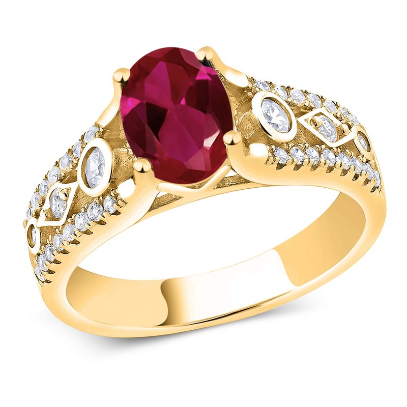 - Elegant Craftsmanship and Design: This stunning ring features a 2.06 Cttw oval 8X6MM red created ruby, set in luxurious 18K Yellow Gold Plated Silver. The classic design and exceptional craftsmanship make this ring a standout piece that adds sophistication and charm to any jewelry collection.